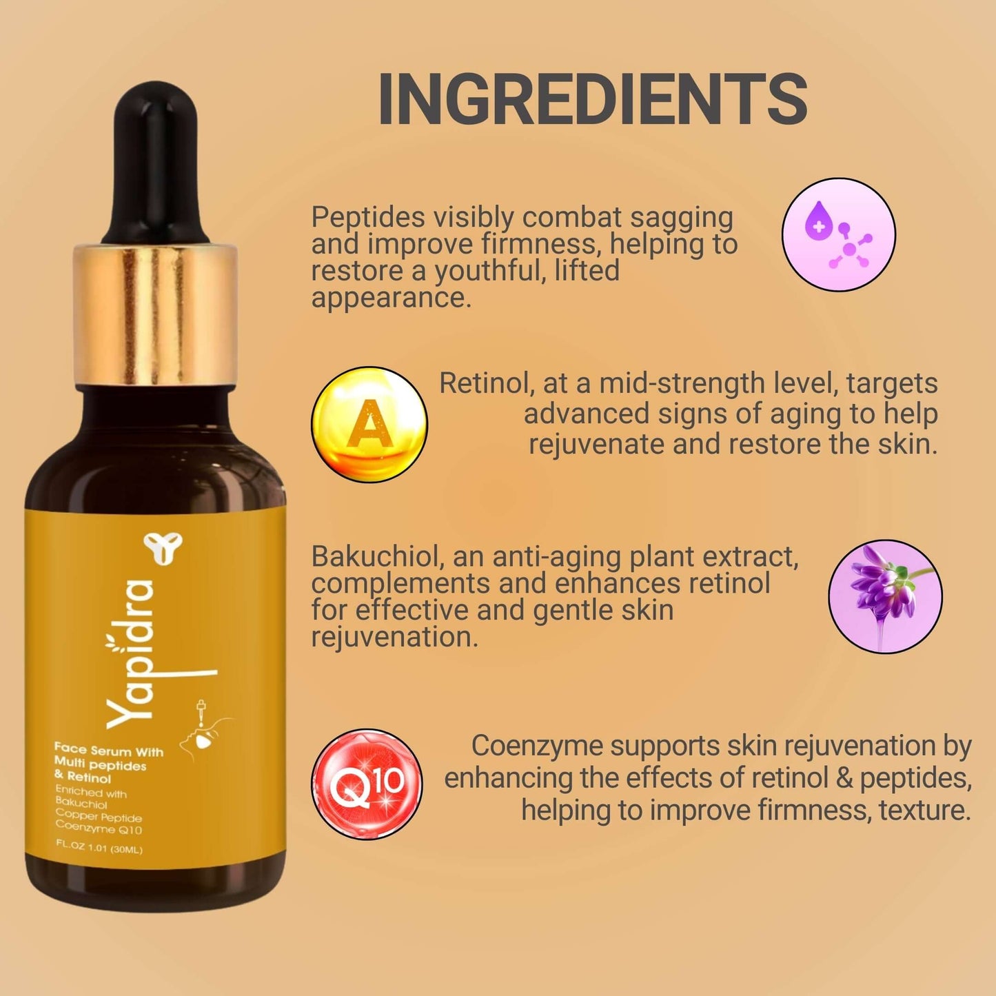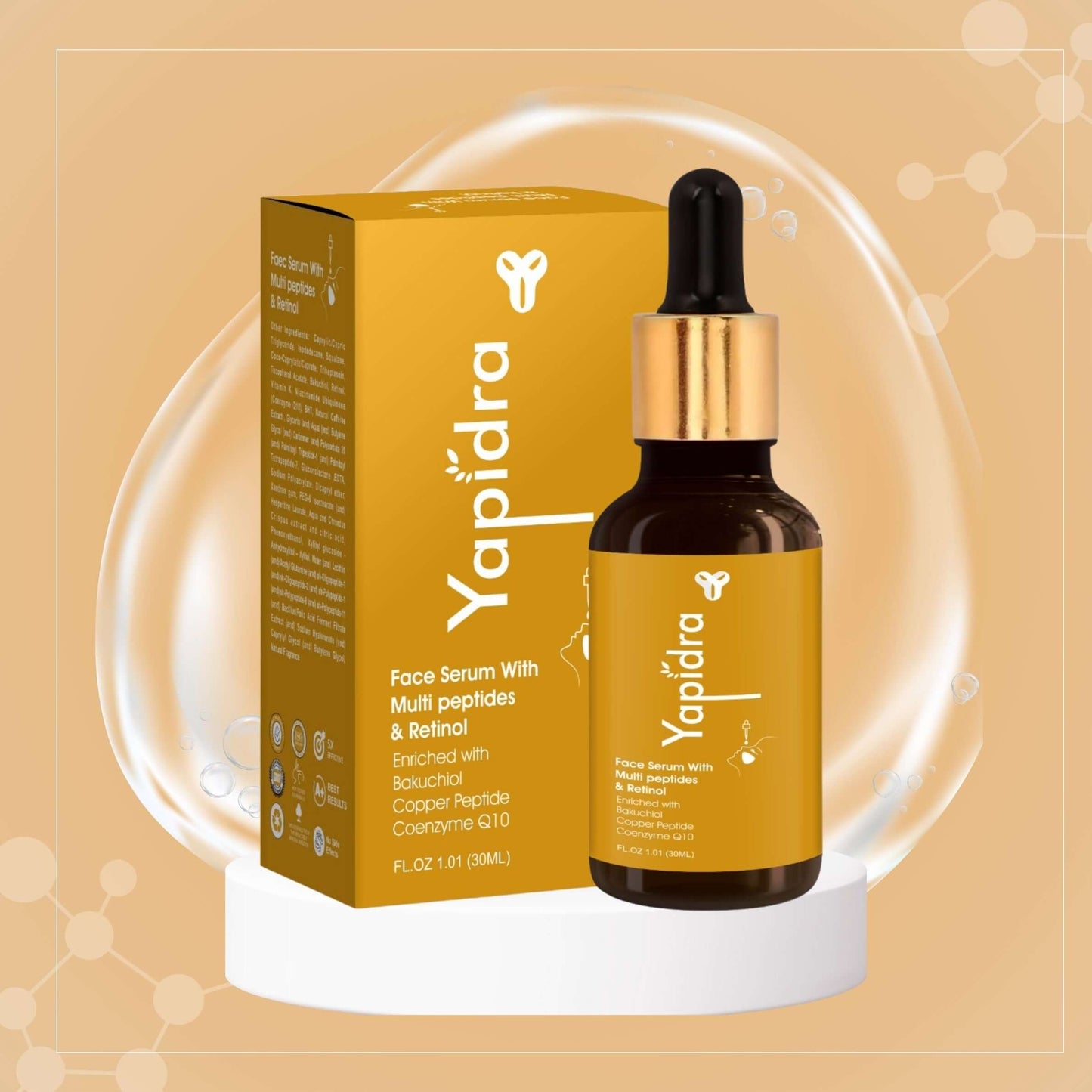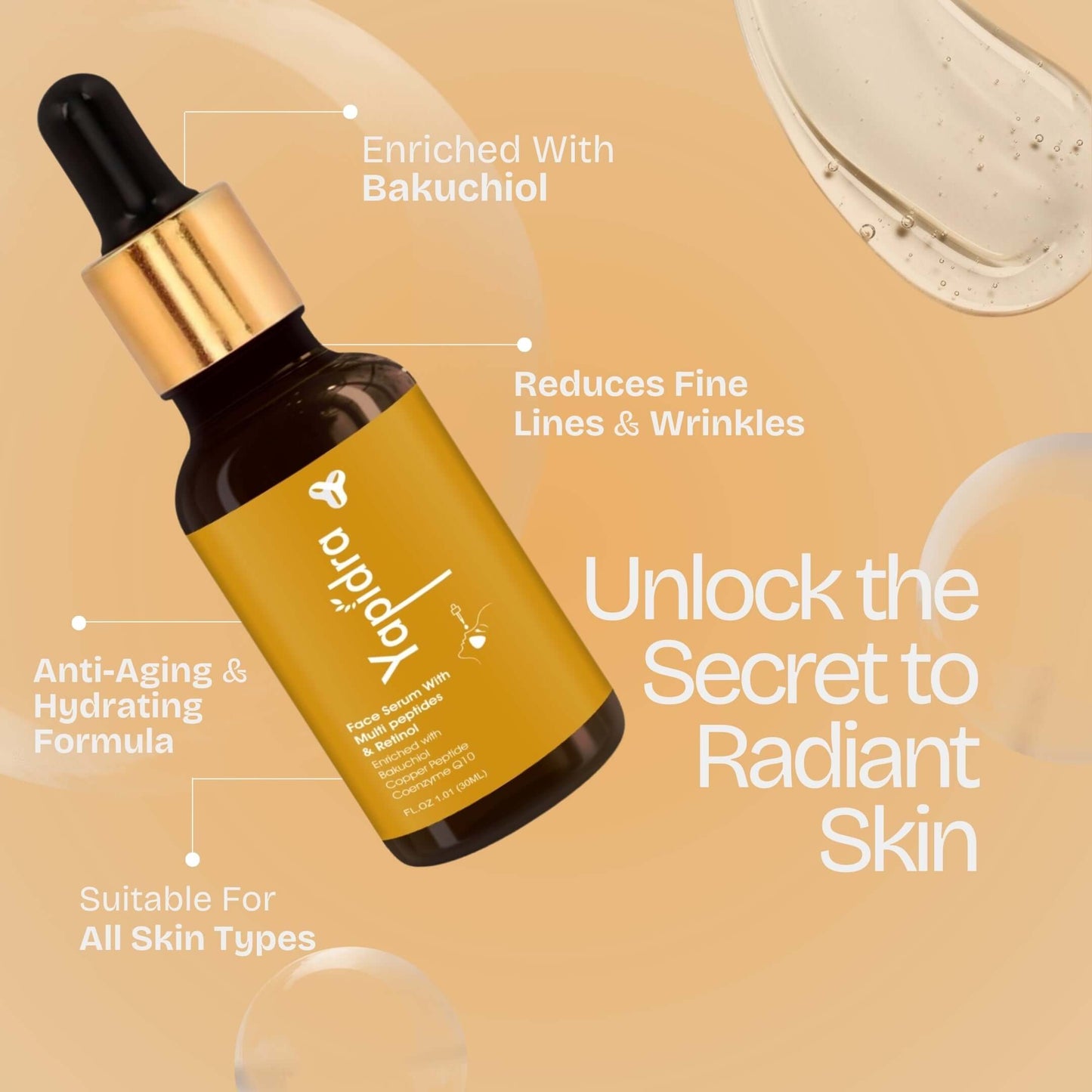 Yapidra Anti-Aging Face Serum with Multi-Peptides & Retinol – Firms & Smooths Skin