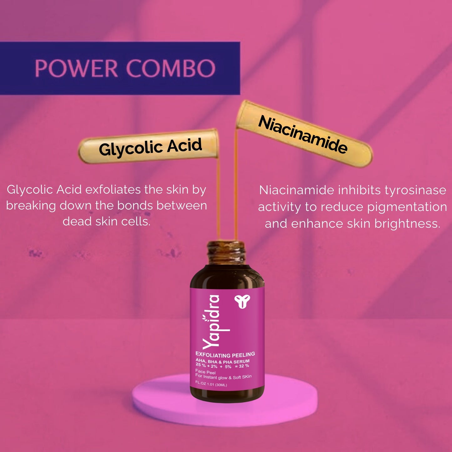 Yapidra Exfoliating Face Serum with AHA/BHA – Unclogs Pores & Renews Skin