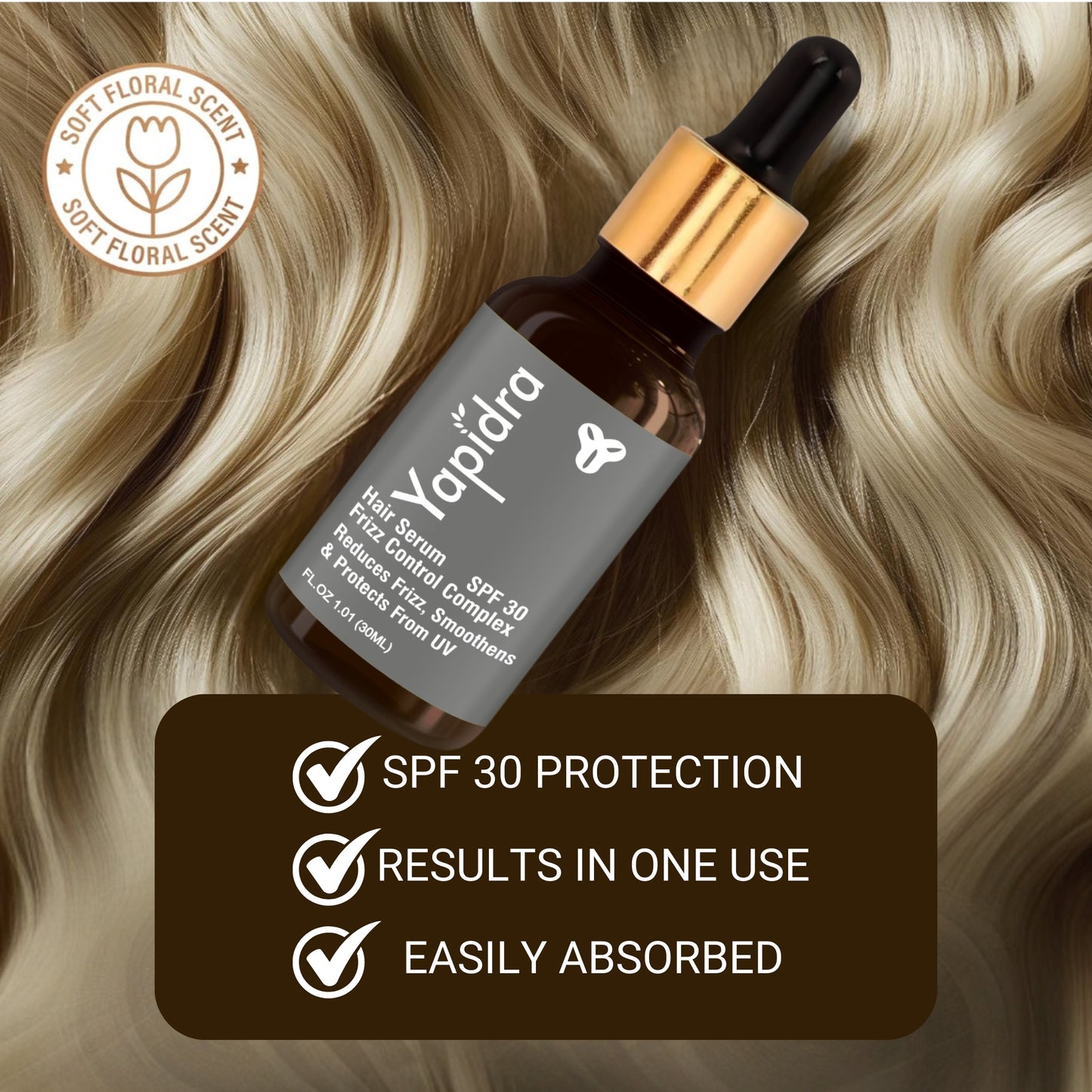 Yapidra Frizz Control Hair Serum – Tames Flyaways & Smooths Frizzy Hair